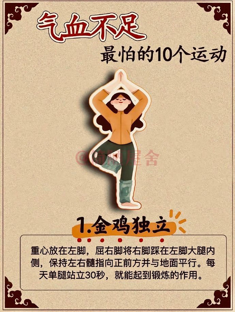 再分享一下为了改善气血不足能做的运动吧 1.金鸡独立