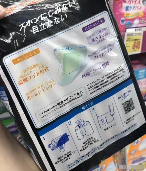 居然有男士卫生巾卖?咋一看你以为是纸尿裤,错,这是男士卫生巾。它的吸水量只有区区80cc,一泡尿可得费好几张呢。如果不是为了在可能尿裤子的场合穿,普通人日常有必要穿吗?我就想知道这是给他们什么时候用的?