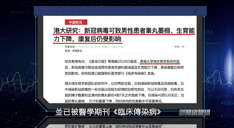 转自凤凰卫视 新冠肺炎后遗症会影响男性生殖健康? 多家中文媒体曾于今年2月刊登一则新闻,称香港大学微生物学系团队研究发现,新冠病毒可能造成男性患者的性腺机能减退,生育能力下降。