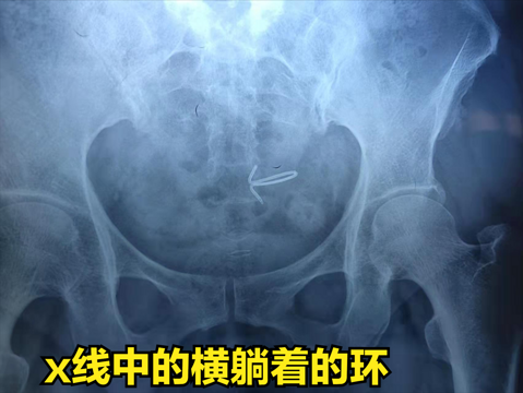 转自北京高级职称医生一枚 前几天发过第一个图片。再看一下,这个骨盆X线片里的有个漂亮的T或者r型的宫内环,不过这个T或者r环是躺在盆腔里,正确的应该是单脚站在那里。这样的或者上了这么久的,妇产科大夫经常见到。 现在看一下这个人的, 这是一位60岁,上环近30年,绝经7年的一位女性的片子,她要求取环。她这个取环手术可是属于高危取环,风险比其他人高。1、她绝经了,我们建议绝经一年取环,她绝经时间久,子