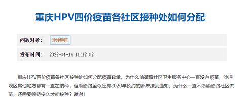 2020年在渝碚路社区卫生服务中心预约HPV四价,到现在都没打到!