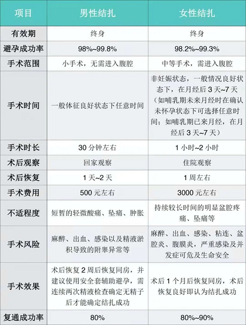 男性结扎VS女性结扎,各方面对比都是男性结扎轻松点吧!
