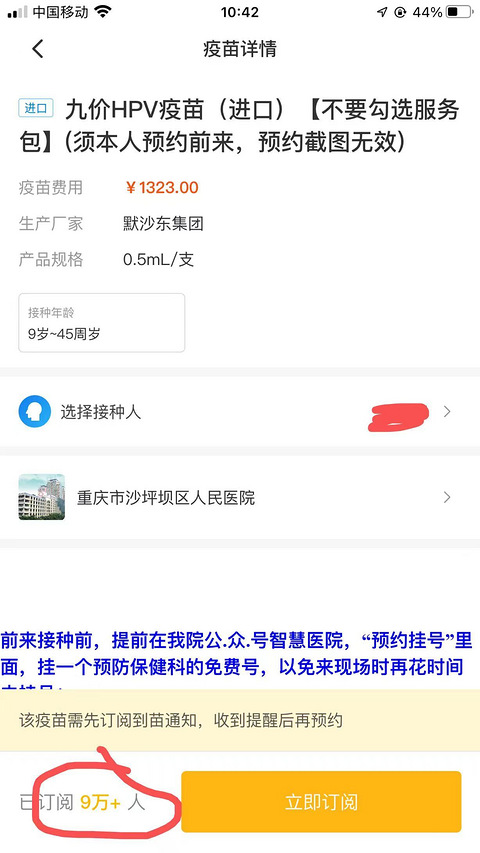 昨晚才刚通知HPV九价疫苗扩龄,沙区人民医院就排到了9万+人!!!这要排到猴年马月才能打到呀? 图源约苗群,我懒得去截图了。