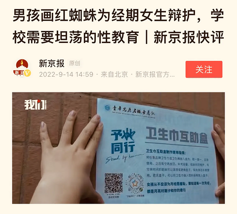 近日,重庆一女生因经期来临不慎将裤子弄脏,遭到了同学们的嘲笑。一男生看不下去,特意在校裤上画了两只蜘蛛,提醒同学们尊重女性隐私。 据男生讲,蜘蛛是很有领地意识的生物,他画这两只蜘蛛,是希望同学们能正确看待女性同学的生理期,莫要去嘲笑他人的正常生理反应。 梦醒锦官城