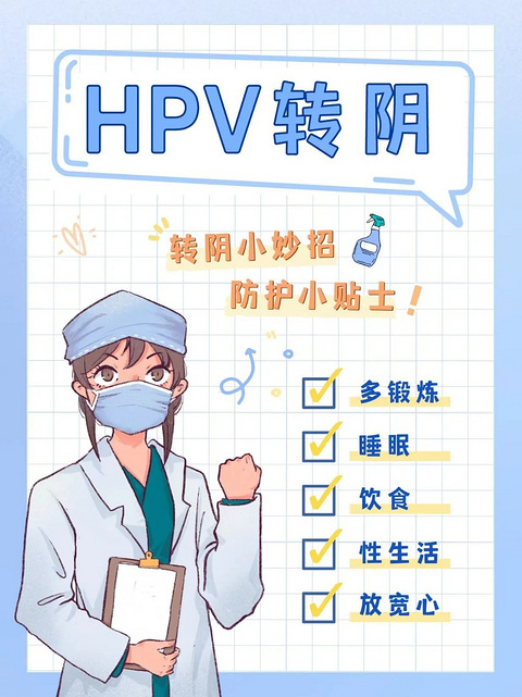目前针对HPV,提高免疫力是唯一有效和安全的治疗方法,我见过很多转阴的成功案例,其中两个要点就是锻炼和睡眠。我们怎样做才会转阴呢?1、锻炼:大多数转阴的患者会每天坚持跑步、跳绳、慢走等方式锻炼,锻炼可以增强我们的抵抗力,但要坚持,每天进行锻炼2、睡眠: 切记千万不能熬夜,熬夜是免疫力下降的最大原因,一定要记得调整睡眠时间,尽量在11:00到12:00之间入睡,睡够7个小时!3、饮食: 补充维生素