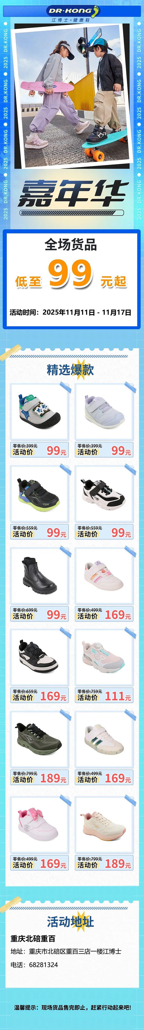 江博士特卖来啦!全场低至99元起11月11日-11月17日重百一楼大门口