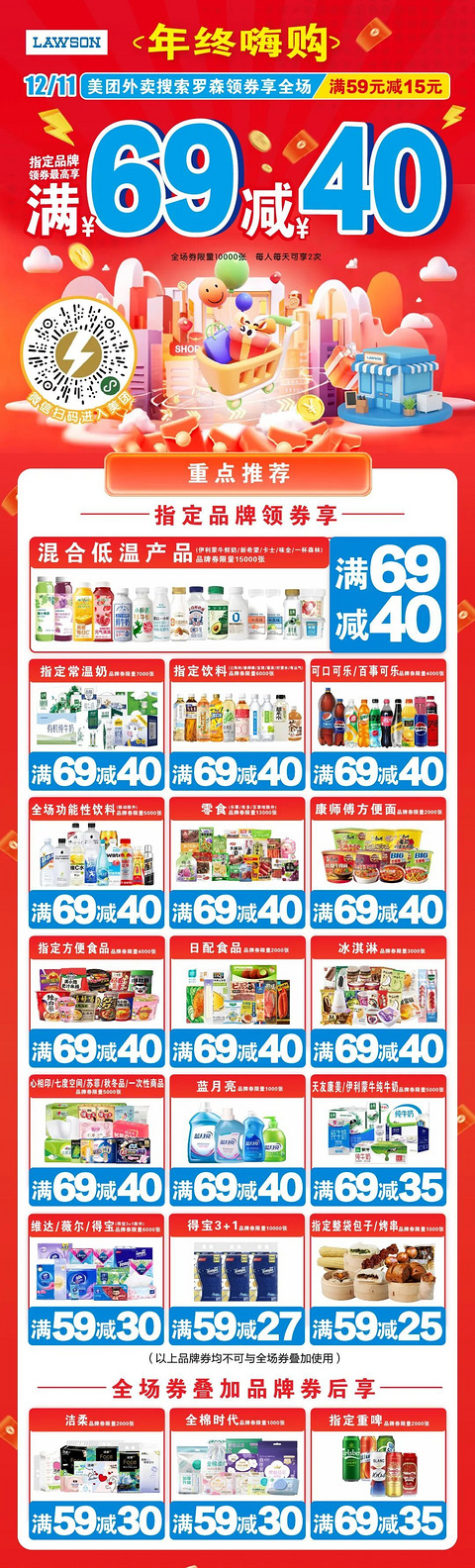 罗森美团外卖满69减40!年终放「价」!