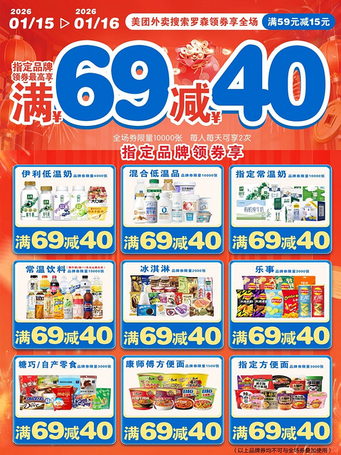 罗森美团外卖69减40,囤货时间到