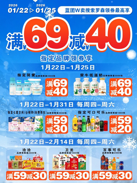 饿了么罗森外卖,69减40!