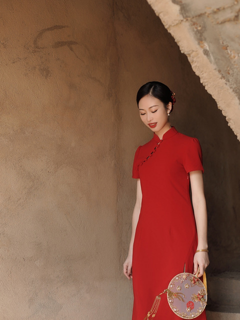 火爆全网的这件旗袍,又一次看到了,不同于千篇一律的鲜花,这次变成了绒花,换一个风格依然很美丽