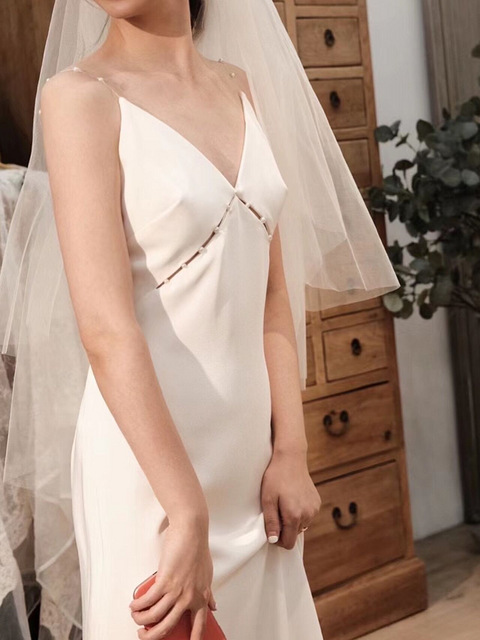 小众婚纱分享,袖子像是郁金香,好适合领证的时穿