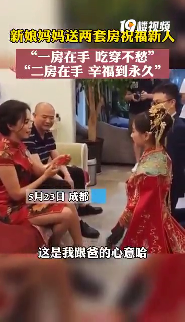 结婚,除了彩礼之后,一般也都是会有嫁妆的。前几天,四川成都一位新人就收到了新娘妈妈的“新婚礼物”,而这个礼物非常的“豪横”,竟然是两套新房,收到礼物的新人也是合不拢嘴,现场到处都洋溢着幸福的气息。