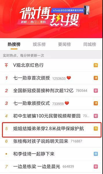 大家有没有看到这样一条微博热搜山东寿光,新娘的弟弟穿着一套2.8米的大黄蜂战甲为姐姐送亲,这身装备重达40斤,弟弟提前租借来训练了好几天才能正常走动,想给姐姐最硬气的“保驾护航”。 婚礼对于自己和亲人,都是一场重要的仪式,它代表着另一个阶段的开始,象征着人生的新旅程。结婚的时候,亲人做过哪些让你感动的事,一起来分享一下吧