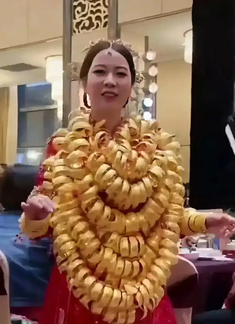 福建晋江嫁女儿,金子如山挂满身,这个地方的嫁妆真丰厚,好想帮新娘分担点重量