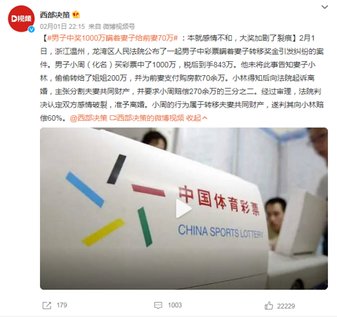 中了1000万瞒着妻子给前妻70万?你们和另一半在金钱方面透明不?