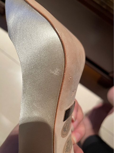 千万不要买这种缎面婚鞋,还没正式穿就已经刮成这样了