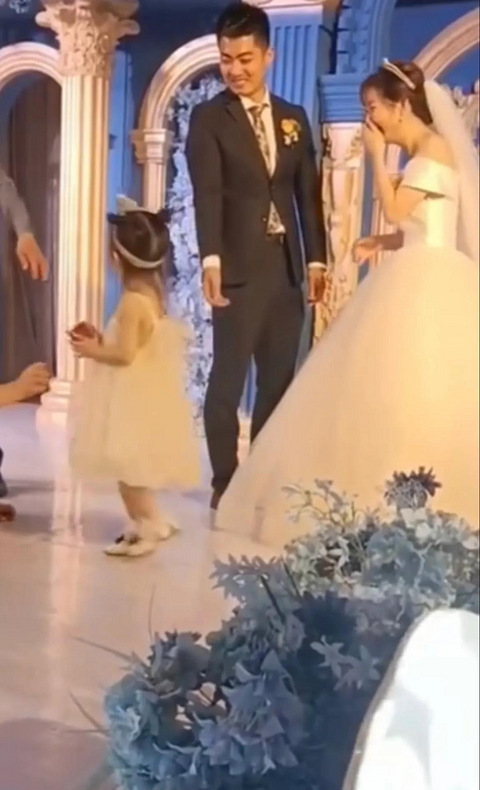 小花童接过戒指给自己戴上了,主持人怎么哄着要她都不给