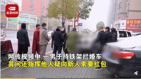 三人拦婚车要钱未果恼羞成怒砸车,摄影师:嫌10块太少,每人想要100! 1月24日,河南驻马店。网曝三人组团拦婚车要红包和香烟。视频中,一男子持铁架拦婚车,其间还指挥他人疑向新人索要红包。婚车摄像师称,新人已给一些10元红包,但他们嫌少,每人想要100元和香烟,后来趁他们不注意的时候,司机强制开车离去。