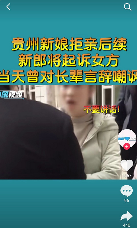 内衣尺寸事件最新进展:新郎将起诉女方,当天曾对长辈言辞嘲讽