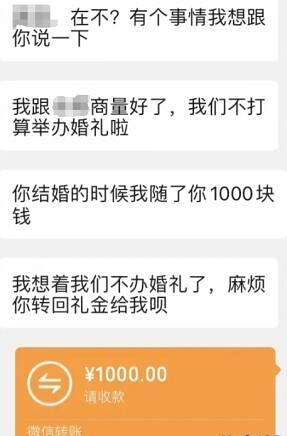 你们有遇到过吗? 大家帮我分析一下,我有点不舒服,不知道是不是我的问题,一个以前的朋友,今天突然跟我说她不打算结婚了,要跟我要当年她随我的份子钱,我就转给她了,按理说,这么回礼也没毛病,但我就是不得劲呢怎么感觉,是不是我做人有问题啊?
