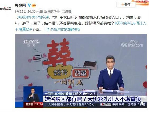 央视评天价彩礼上了微博热搜,底下评论炸了....