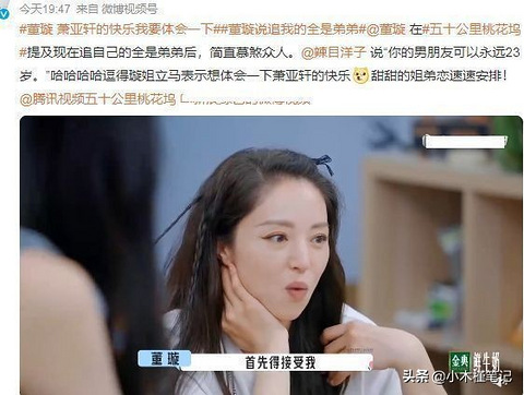 近日,董璇在《五十公里桃花坞》中首次提到择偶问题,她透露现在追她的人都是弟弟,最后还调侃道,想体验一下萧亚轩的快乐。