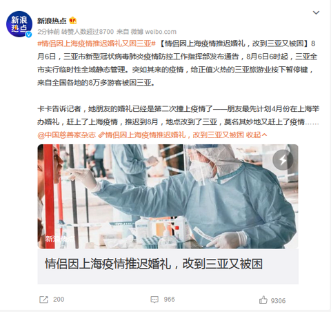 太惨了!情侣因上海疫情推迟婚礼,改到三亚又被困