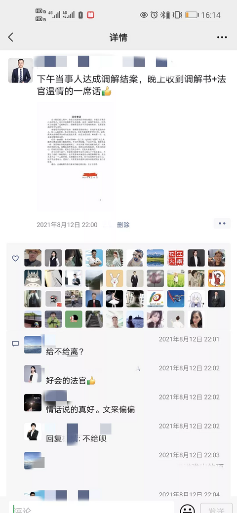 “经营一份感情,本应如同栽种一盆兰花,起初始于爱慕兰花之美,播种后便是日日辛勤的照料,半刻不得松懈。兰花会生病,感情也是一样……”这段温情的话语来自浙江省龙港市人民法院近日出具的一份离婚调解书。该案代理律师将这份法官寄语发到朋友圈后,被媒体转载至微博,引发网友点赞,截至目前,阅读量高达47余万。
