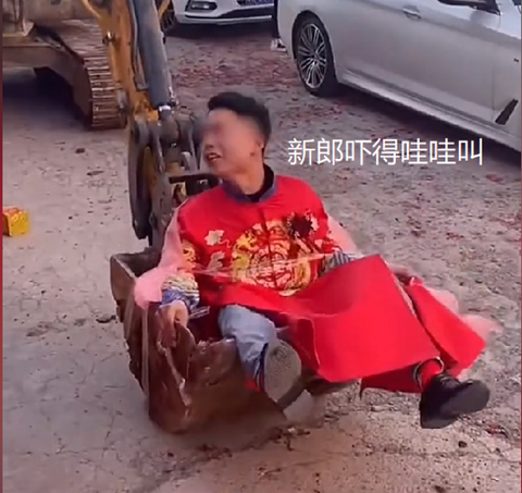 新郎被绑挖机上晃动,表情痛苦!婚闹这种陋习什么时候能消失?