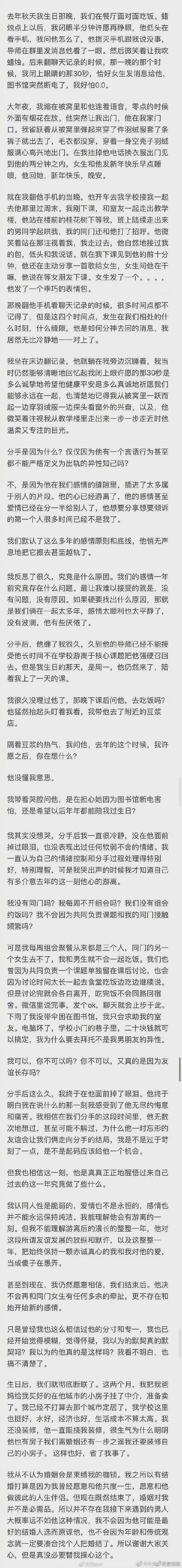 不知道你们有没有看过那个帖子。第一次看到它的时候,大概是一两年前,当时只觉女主人间清醒。 简单来说就是男主与另一个女孩保持频繁聊天一年时间,但期间并没有越轨行为或是暧昧的内容。 一年里,他们每天会互相推送歌单,单独出去吃饭,分享彼此的生活状态。 女主发现了这个事实,果决地提出了分手,八年的感情就此终结。