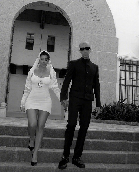 金大姐考特尼卡戴珊和纹身未婚夫特拉维斯·巴克成为了正式的夫妻,让人没有想到的是,42岁的金大姐这还是第一次结婚,而新郎巴克对金大姐的疼爱,简直是要宠上天了。两人的结婚誓词也是很极致,“直到死亡将我们分离”,金大姐这次的感情还真是轰轰烈烈的感觉,大姐对于其他姐妹各种捞金很淡定,而她陷入在自己的恋爱脑中。昨天曝光的现场结婚照,被粉丝们吐槽婚纱显得过于廉价 ,而如今正式的婚纱终于出炉了,终于不再显得廉价