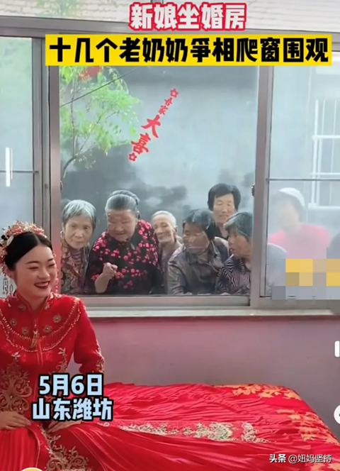 新娘坐婚房老奶奶集体趴窗围观,奶奶们是在回忆着她们的青春吗?