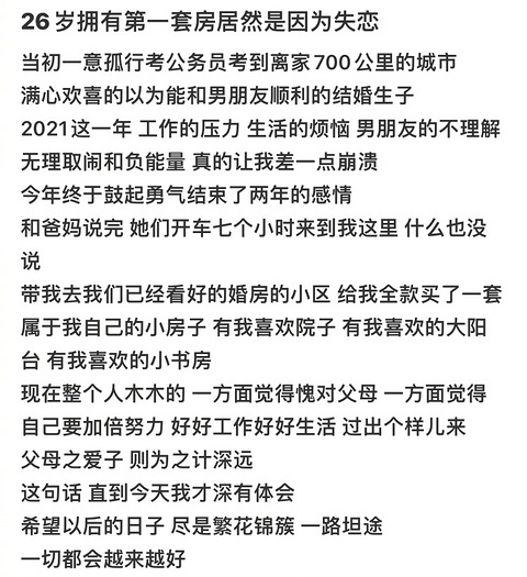 当初一意孤行考公去离家700公里的城市,只为了和男朋友有一个确定的将来。最后房子和工作都有了,对象无了。 我发现这种事发生的越来越普遍,好几年前我的朋友就是因为男朋友要去成都工作,她综合考虑了之后决定考研跟去成都。那份毕业以后两个人就成家的美好愿景在备考期间给了她无数的动力。幸运的是,她真的考上了,只不过研一都没过完。他们就分手了 毕业后他们又撞见了一次,在机场她是随行翻译,他是飞行员,他们都成为