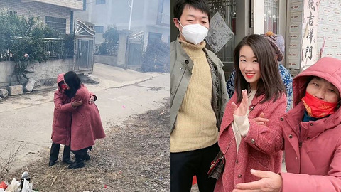 第1次带女友回家,家人齐聚鞭炮迎接,准婆婆一把抱住超热闹