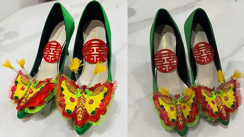 山西。婚礼前一晚新娘翻出几年前,姥姥为自己亲手缝制的出嫁鞋。 新娘称:鞋子上的大蝴蝶是姥姥手工缝制的,大蝴蝶色彩鲜艳,做工精致,看着很喜庆,一针一线都是姥姥的爱。自己要嫁人了,但姥姥却没能等到这一天,也许她在看不到的地方,也在挂念着外孙女。