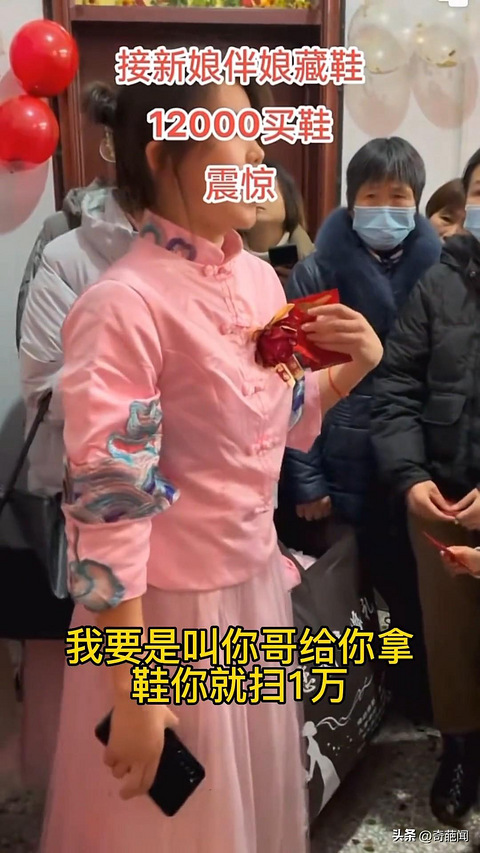 近日江苏徐州有网友就在某社交平台上分享了一段新郎接亲受阻的视频引发网友热议,起初我们本以为接亲讨要红包只是为了烘托氛围、讨个好彩头,可镜头前女方家小姨子却狮子大开口非要12000元,不然拦门不让过 女子态度冰冷地说道:“如果你扫我一万元,那我去拿鞋后只能叫你哥了;如果你扫我一万二千元,那我就去给你拿鞋并管你叫姐夫,你看怎么选”?说完便立即亮出自己的手机收款码等待新郎的抉择。 最后在众多亲朋好友的注