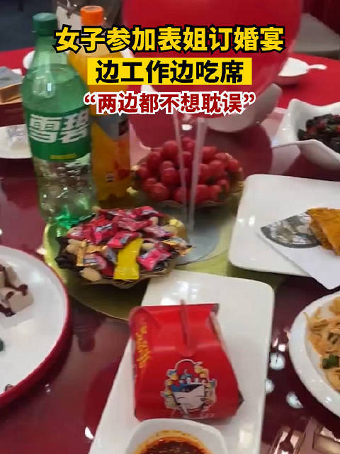 参加表姐订婚宴边工作边吃席:两边都不想耽误