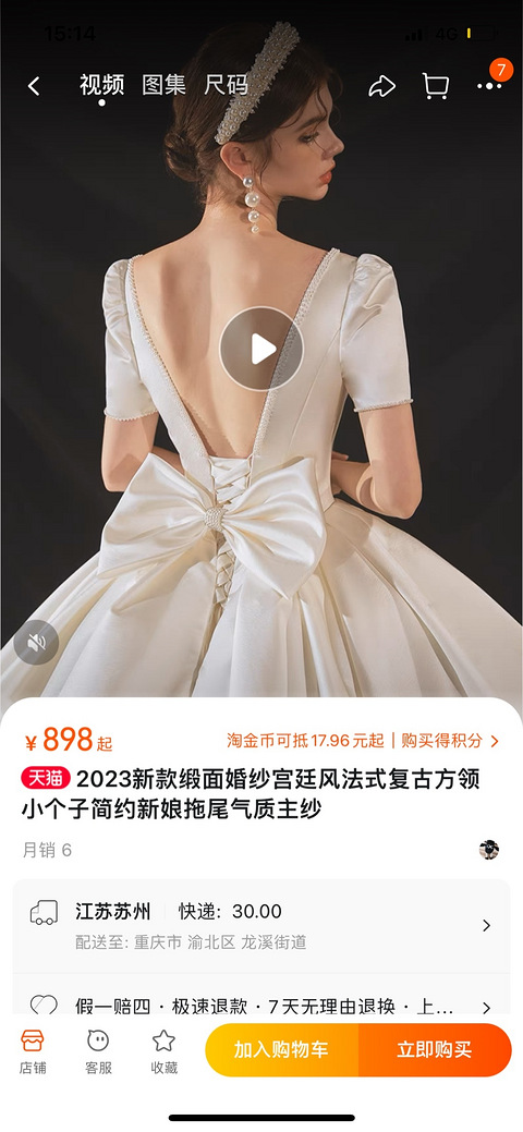 高级缎面婚纱低价处理,原价898现价200元