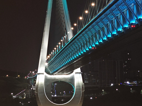近日,大学同学一家三口从福建来重庆玩,天气热,带着小孩,晚上看洪崖洞夜景的时候,走了千厮门大桥的一个来回,冤枉路太多,在这专门提醒一下后来要去的各位。 上桥一定不要走以前上桥的路,不然会走到远离洪崖洞的那一侧,要从解放碑到洪崖洞天桥下面开始,沿着公路上,靠着洪崖洞广场反向沿着公路走(不要进去广场,要走公路),就能穿过公路洞子,走到桥上能看夜景的位置了。就这些了,上图纪念一下