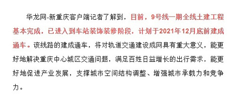 前两天翻公众号,发现9号线又有了新的进度。先截个图,一目了然,一期说是年底前要通车。