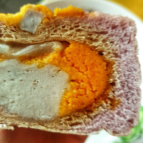 被前同事安利的虎皮蛋糕卷,真的很好吃啊。小小一卷口感很有层次,外面是虎皮然后一层薄薄的奶油,再是一层咖啡味蛋糕夹层,再一层薄薄奶油,最中间夹了的一个非常软糯的麻薯。整个包裹得非常紧实,吃起来很有韧性,也不甜腻。15元一个,刚刚吃了还剩最后一口感觉拍照来安利路过元祖必买啊