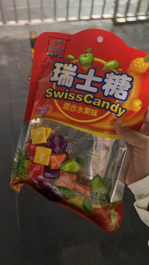 之前幼儿园放学有小朋友给橘柑吃了这个瑞士糖,然后她一直念念不忘,找了很多地方都没有这种方形瑞士糖买