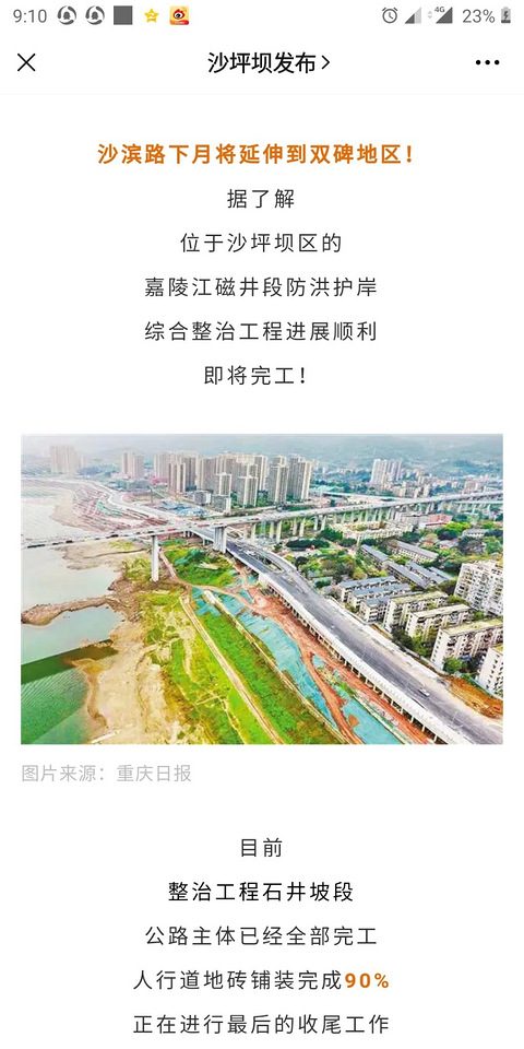 下个月沙滨路从石井坡延伸到双碑地区