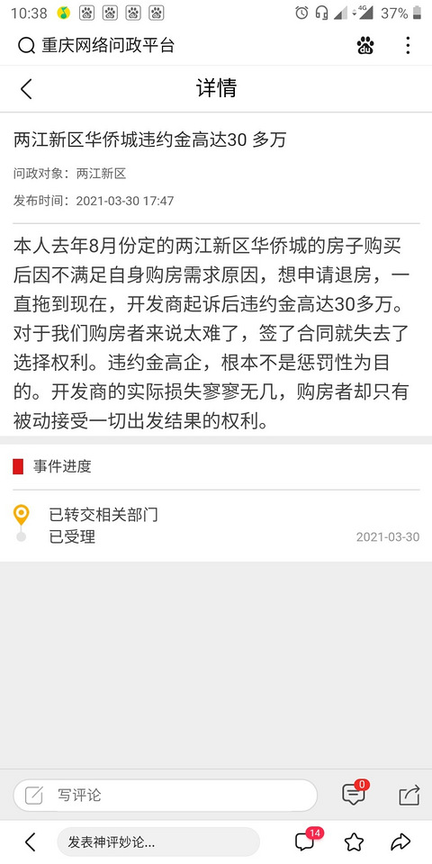 作为6月因二娃需要改善自住上车的来说,下半生劳累是肯定的。外加资产不断缩水,不断被空军嘲笑,重庆真的是躺平人士的天堂。以后娃娃要是学习不好,留在重庆躺平挺好,如果学习不错,砸锅卖铁也要出去。恭喜空军,你们赢的很彻底!
