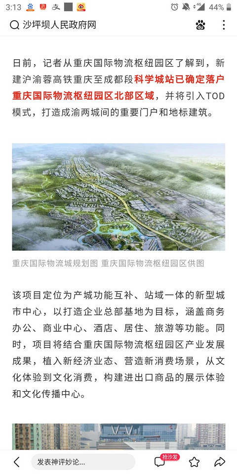 沪渝蓉高铁科学城站。也要引入TOD模式