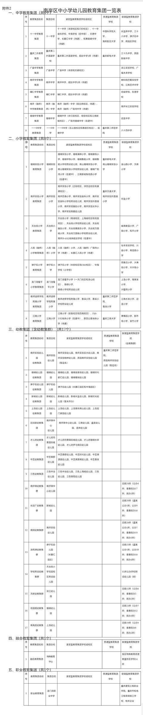 重庆市南岸区人民政府关于印发《关于推进南岸区中小学幼儿园教育集团高质量发展的意见》的通知
