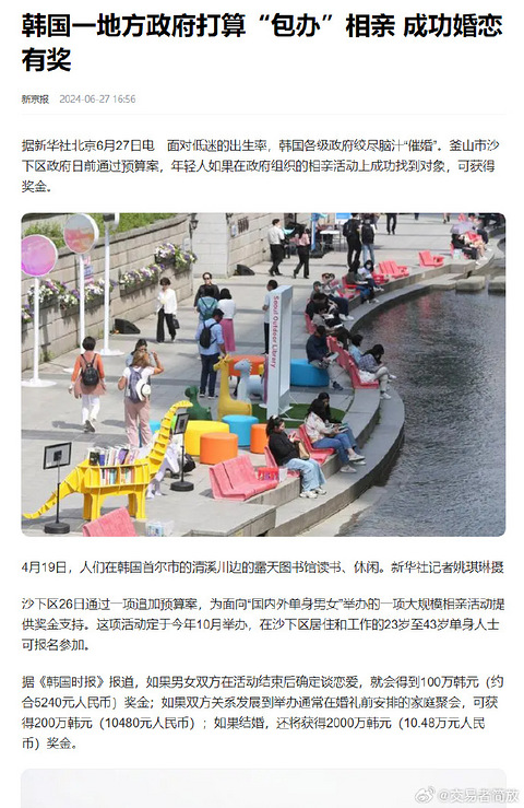 韩国一地方政府打算“包办”相亲,成功婚恋有奖