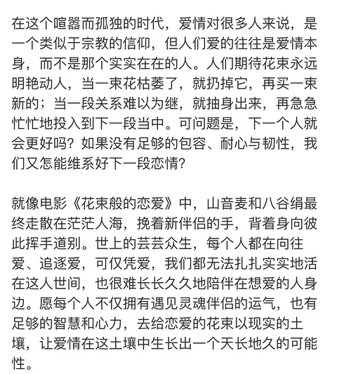 一日两人三餐四季,生活终究会回归平淡,决定两人是否能走到最后的,归根结底还是对方能否接受卸下防备之后最真实的彼此。下次恋爱之前,可以让心动的时间长一点、再长一点。