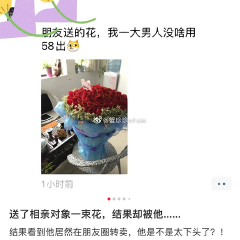 “送相亲对象的花被他放在朋友圈设置仅我可见二手转卖….”