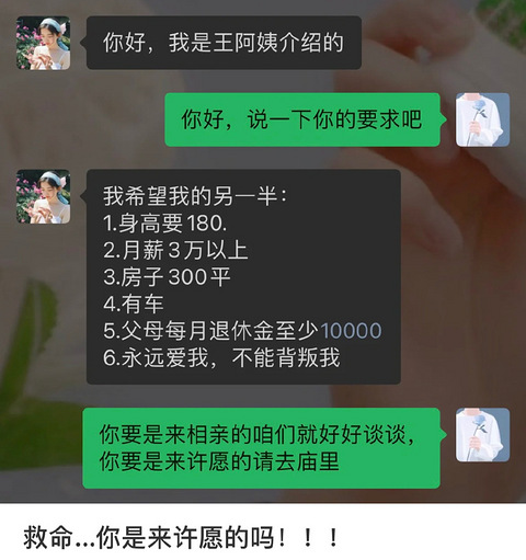 网友和还没见过面的相亲对象聊天